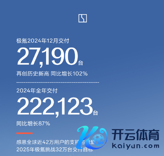 【CNMO科技音问】2025年1月1日,CNMO预防到,极氪汽车官方通知。2024年12月,极氪汽车单月拜托量达到了创记录的27190辆,与旧年同时比较终明显102%增长。